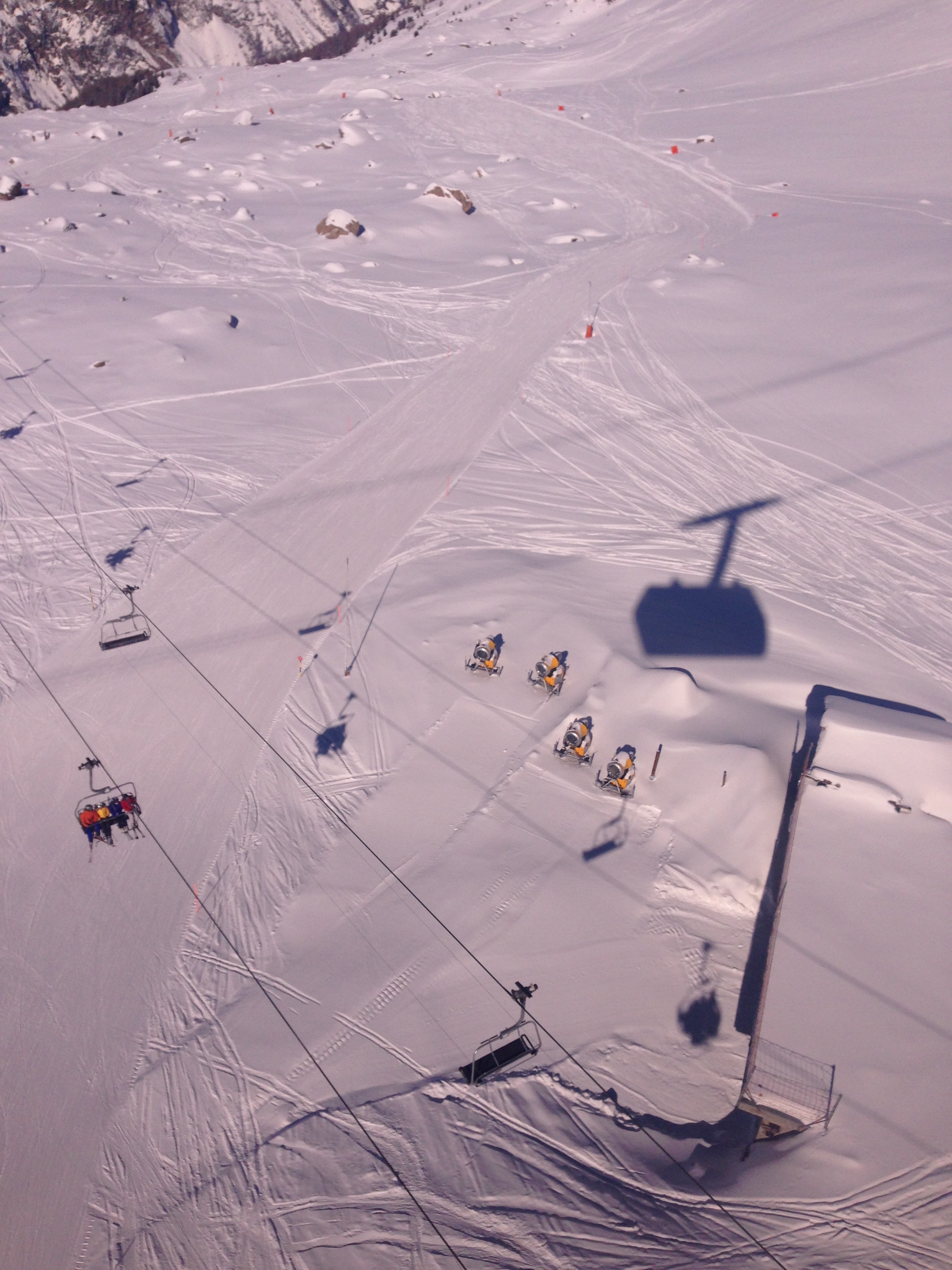 Vergangenes Wochenende fuhr ich mit der Seilbahn vom Hohtälli auf die Rote Nase und blickte auf Monte-Rosa-Massiv und Monte-Rosa-Hütte.