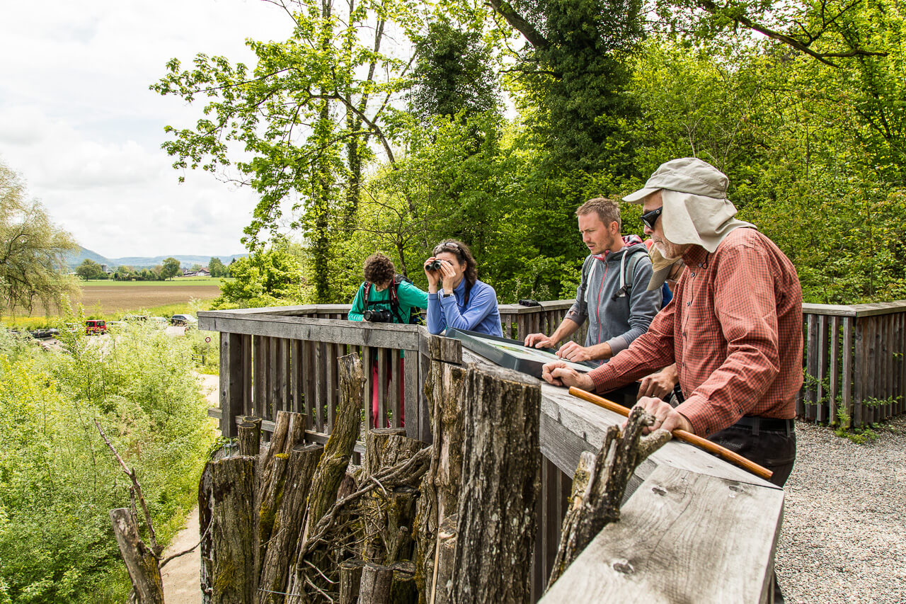 Nach rund fünf Jahren intensiver Planungsarbeit und einer Bauzeit von 15 Monaten ist am Hochrhein bei Rietheim ein neues Naturschutzgebiet entstanden und am 20. Juni 2015 eingeweiht worden. Es ist das Resultat der Zusammenarbeit von Kanton Aargau, Pro Natura Aargau und dem Biber, denn erfreulicherweise haben auch unsere grössten einheimischen Nager ihren Teil an der Neugestaltung der Aue in Rietheim geleistet und werden auch weiterhin die Auenlandschaft mitgestalten.