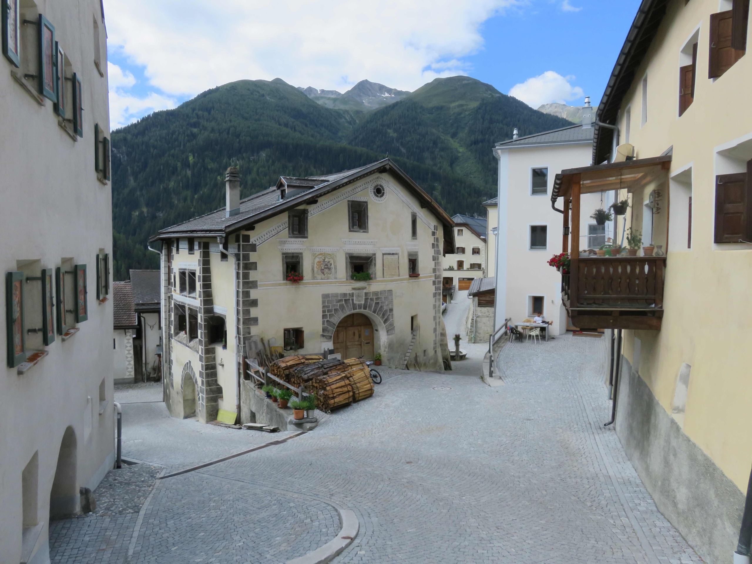 | Peter Christener | Das Dorf heisst Ardez. Die Aufnahme ist an der Koordinate 46.7756077 10.2001484 entstanden. Die Gasse heisst Tuor, der Turm gehört zur Ruine Steinsberg. Die Hausnummer 135 half beim Suchen. |