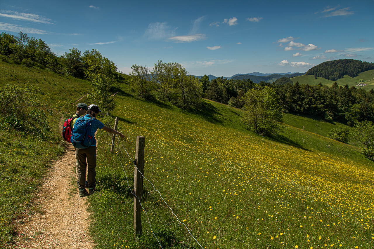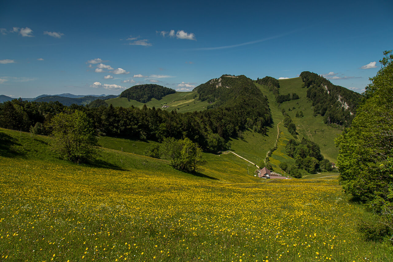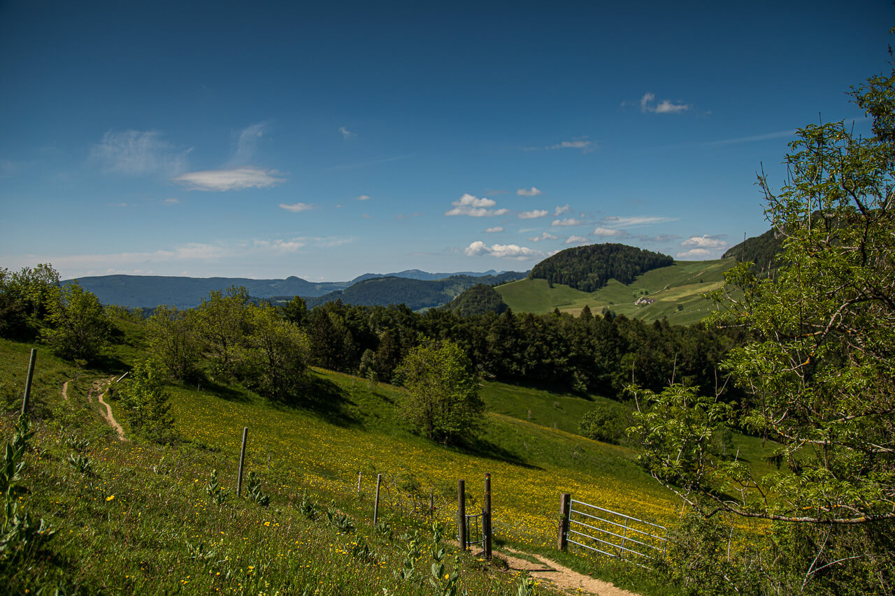 Auf der Wasserfalle sind verschiedene Aktivitäten möglich. Im Waldseilpark kann man seine Schwindelfreiheit testen, mit dem Trottinette saust man nach Reigoldswil hinunter. Und natürlich kann man dort biken oder, wie wir es taten, wandern, nämlich von Waldenburg über den höchsten Berg des Kantons Basellandschaft und an eben jener Wasserfallen vorbei zum Passwang.