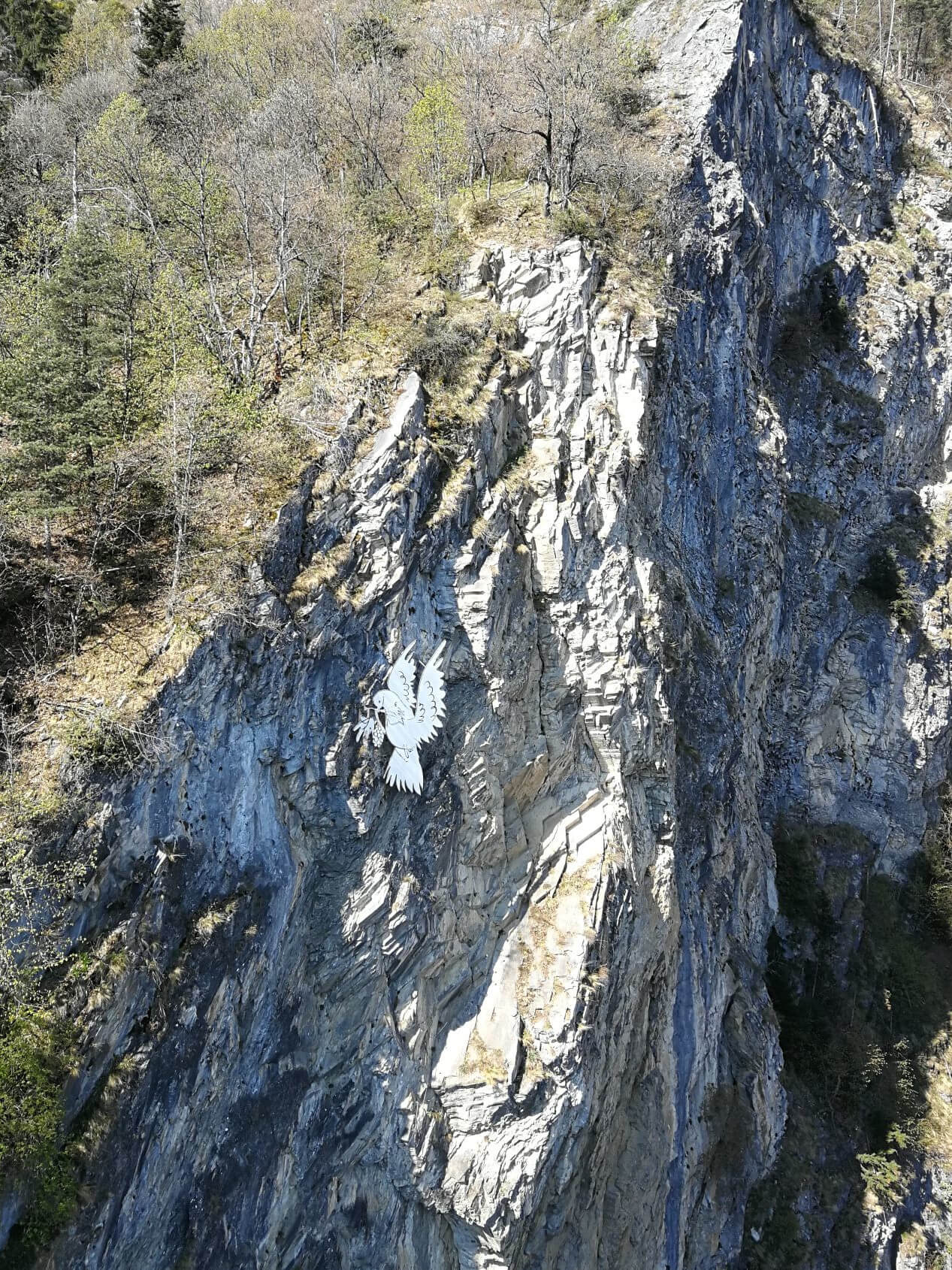- Die neben der Brücke montierte Friedenstaube aus Metall ist ein Geschenk des Künstlers Hans Erni