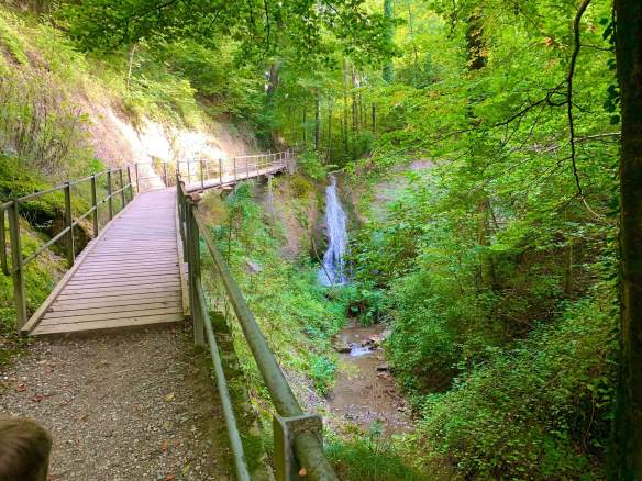 Wir suchen hier das Tobel, in welchem der Wasserfall in die Tiefe rauscht.
