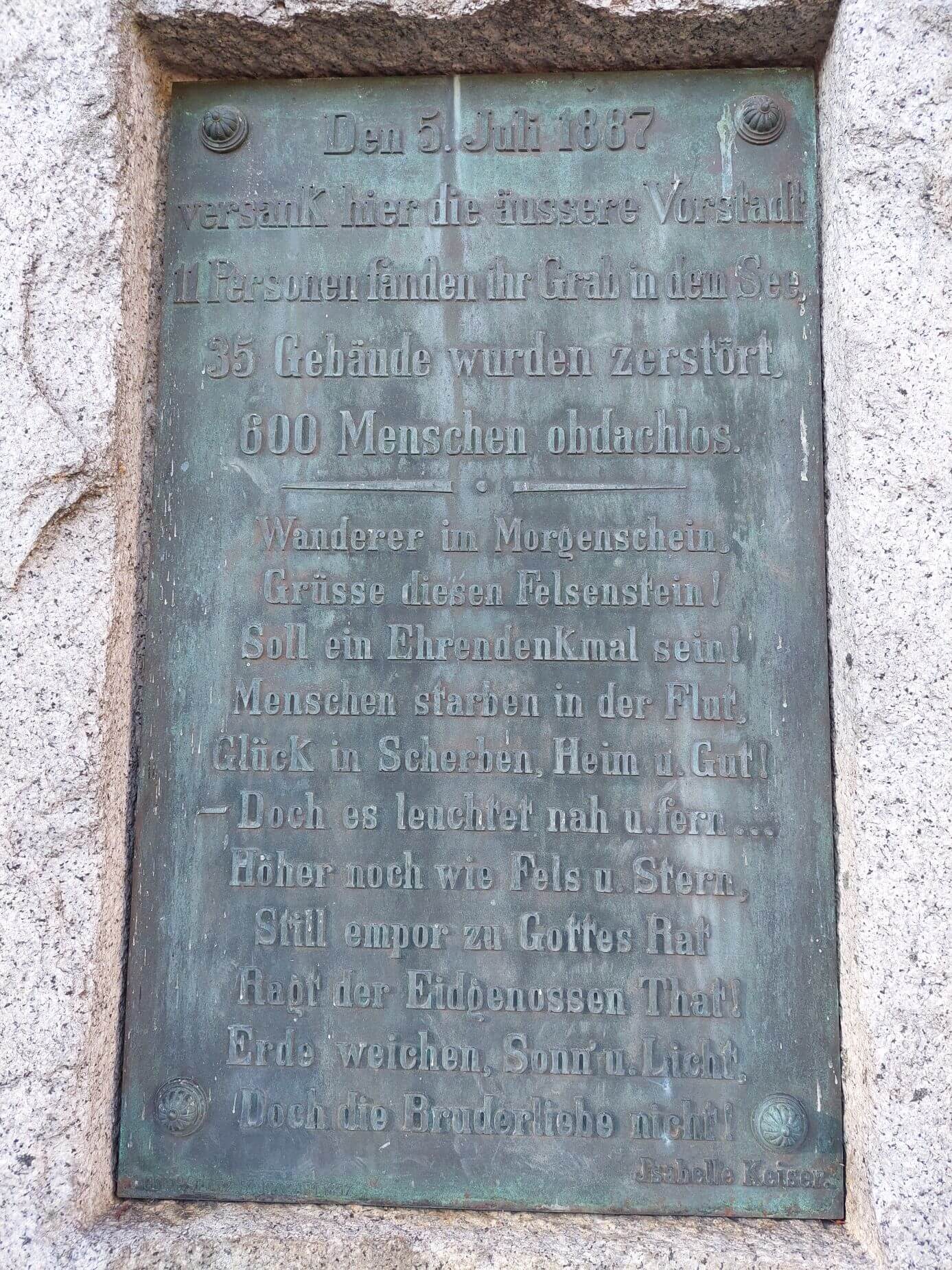Am 5. Juli 1887 stürzten schliesslich zahlreiche Häuser in den See. Elf Menschen starben, hunderte wurden obdachlos. Das Ereignis geht als Vorstadtkatastrophe in die Zuger Geschichte ein, die dabei entstandene Seebucht heisst in Erinnerung daran Katastrophenbucht. Omen est nomen sozusagen.