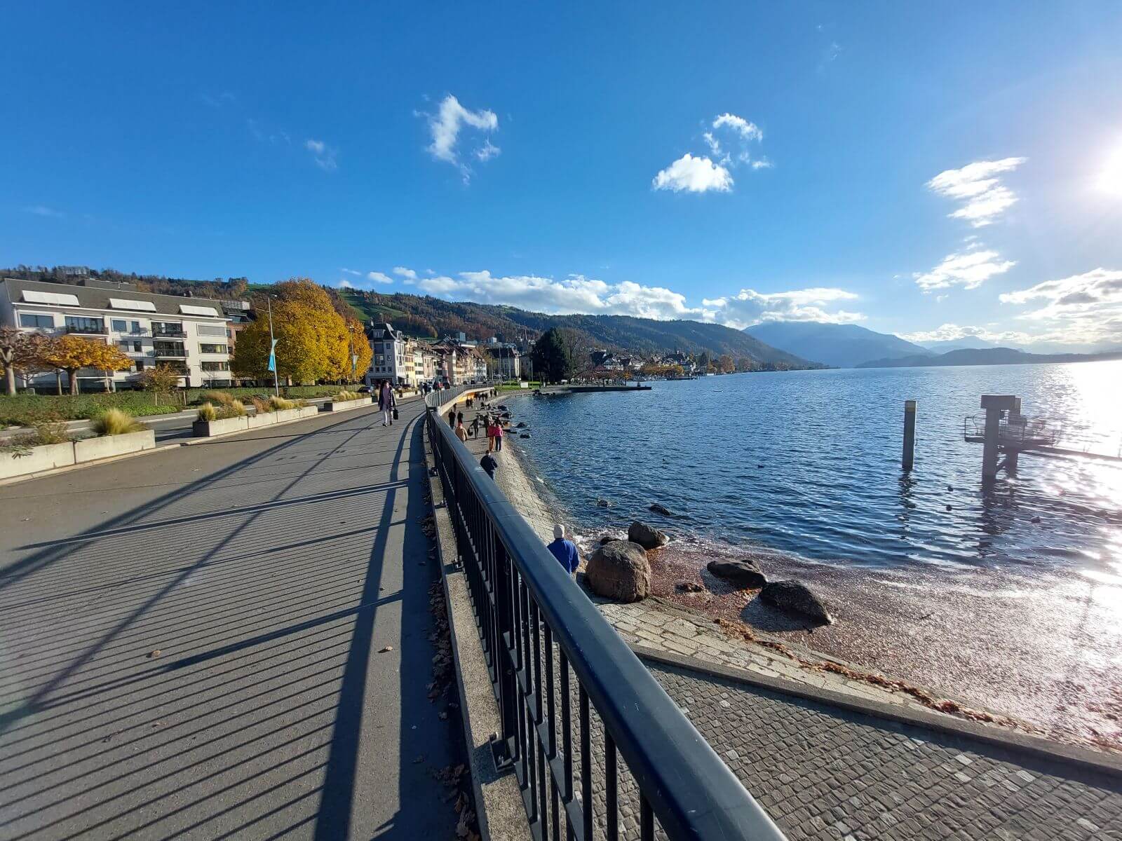 Eigentlich sollte an diesem Ort eine Seepromenade nach Luzerner oder Zürcher Vorbild entstehen. Trotz schlechter Vorzeichen – während den Bauarbeiten entstanden Risse im Boden und entsprechende Gutachten rieten, vom Vorhaben abzusehen – wurden die Bauarbeiten weitergeführt.