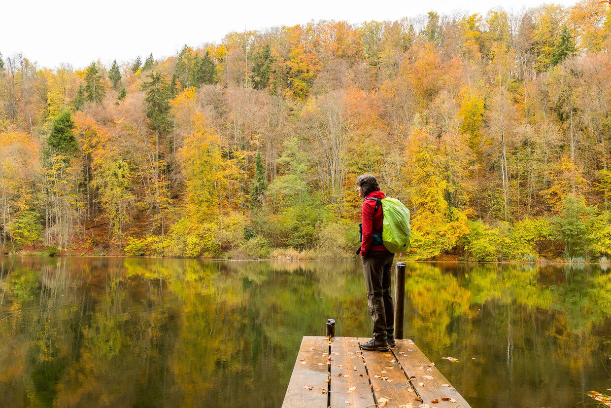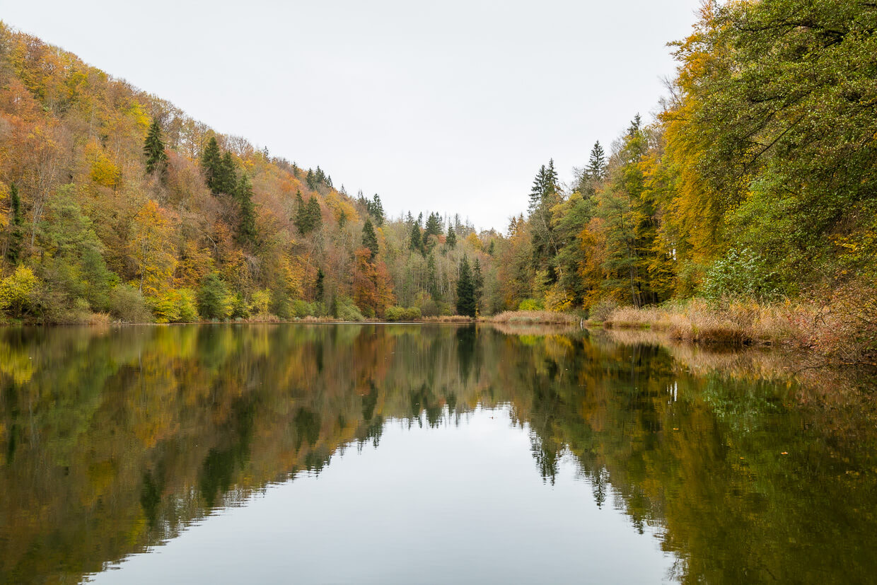 Aber grösster was? Er ist der grösste, ganz im Kanton Aargau liegende See. Wobei See schon fast zuviel gesagt ist, eher ein grosser Weiher. Aber er liegt sehr idyllisch in einem Tälchen. Im Sommer allerdings ist es vermutlich mit der Idylle nicht weit her, dann wird hier an heissen Tagen Hochbetrieb herrschen. Wir konnten aber im November diese Idylle geniessen auf der Wanderung von Spreitenbach nach Bremgarten.