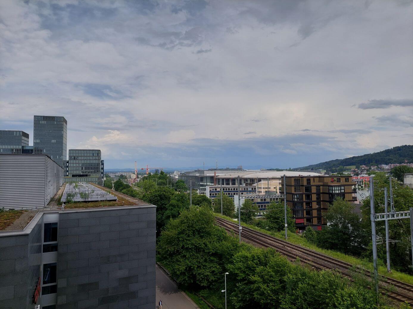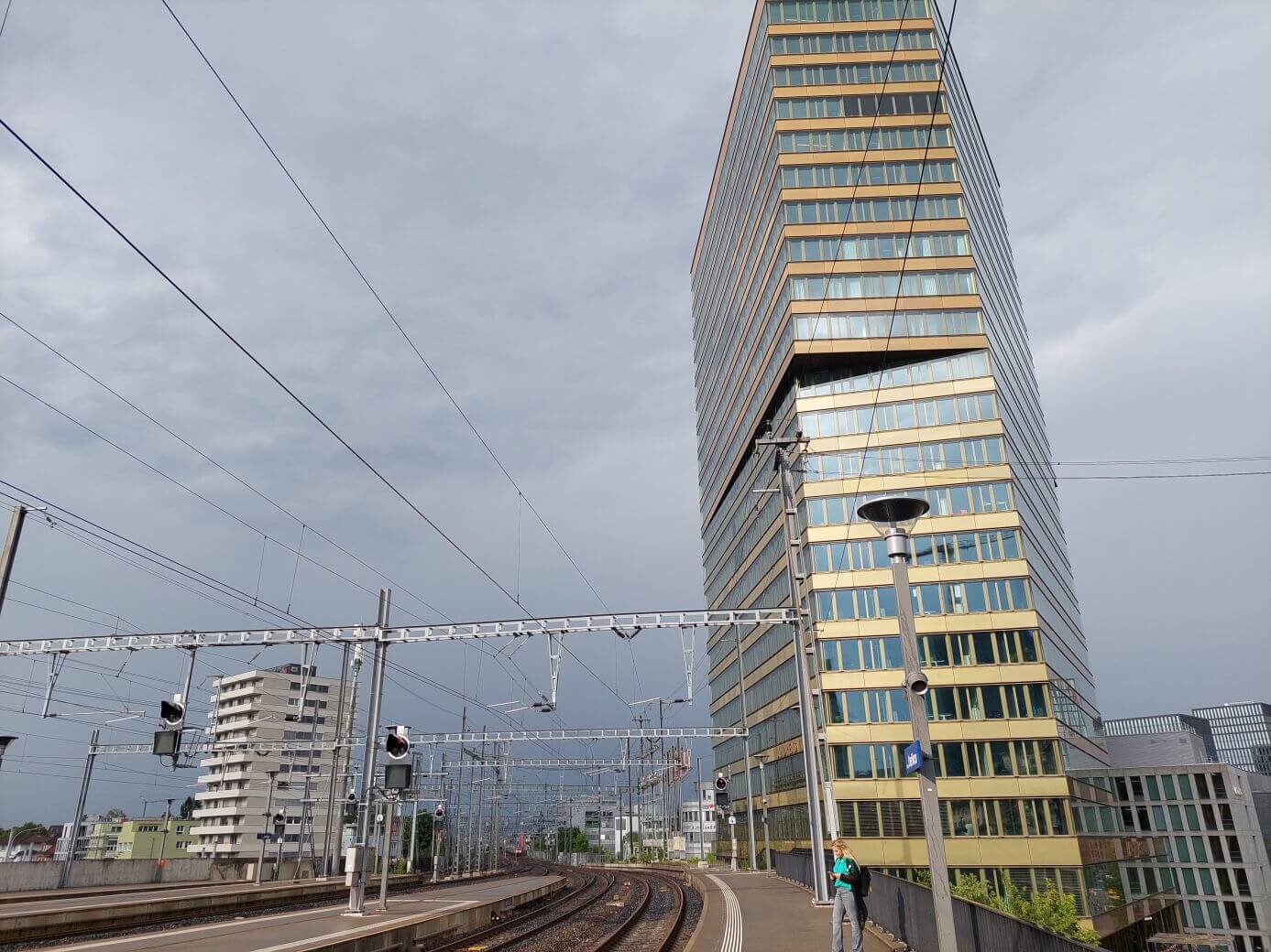 Direkt im Rücken des Rätselfotografen für #1748 steht der Andreasturm am Bahnhof Oerlikon.