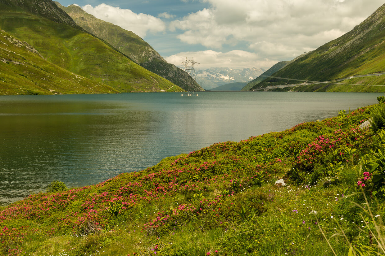 Alpenrosen, ein See, nur der Stommasten irritiert ein wenig. Die Frage ist aber ganz einfach: