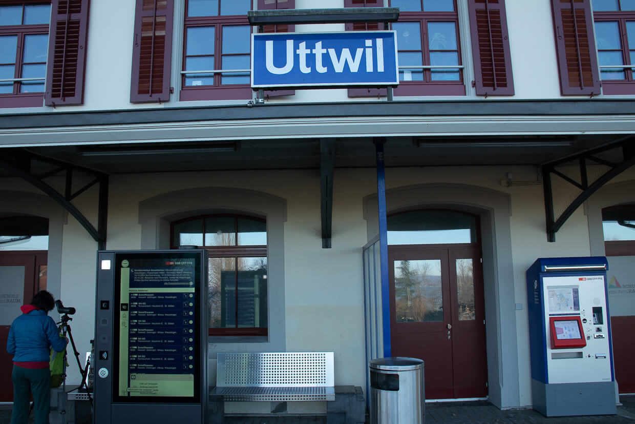 Der Bahnhof Uttwil steht an der Strecke des „Thurbo“, der Regionalstrecke im Thurgau. Mit 1911 Einwohnern (Stand 31.12.2023) ist es eine überschaubare Gemeinde. Der prominenteste Bürger ist wohl Werner Günthor, die Kugelstosslegende und bis dato letzter Medaillengewinner in der Leichtathletik an Olympischen Spielen.