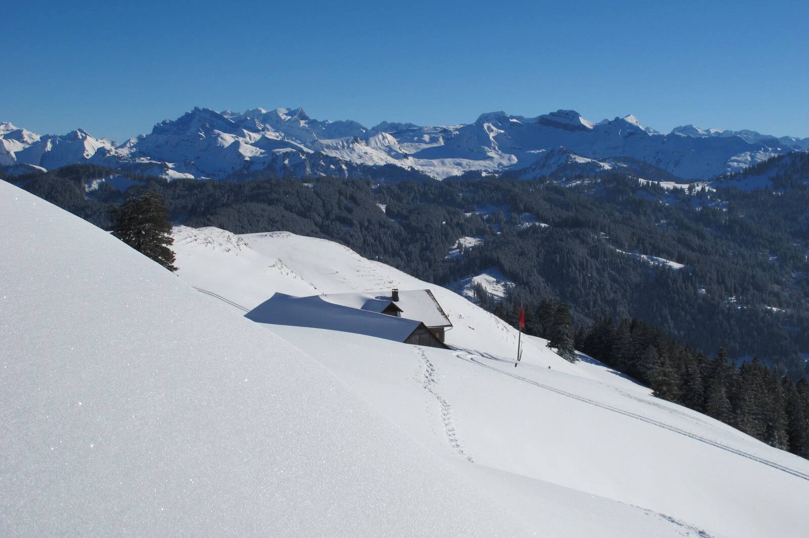 Wahnsinnig hoch sind sie nicht, die Gipfel rund ums Alptal. Aber lohnende Ski-/Schneeschuhtouren sind sie auf alle Fälle, wenns dann mal genügend Schnee hat. Und überraschend aussichtsreich dazu!