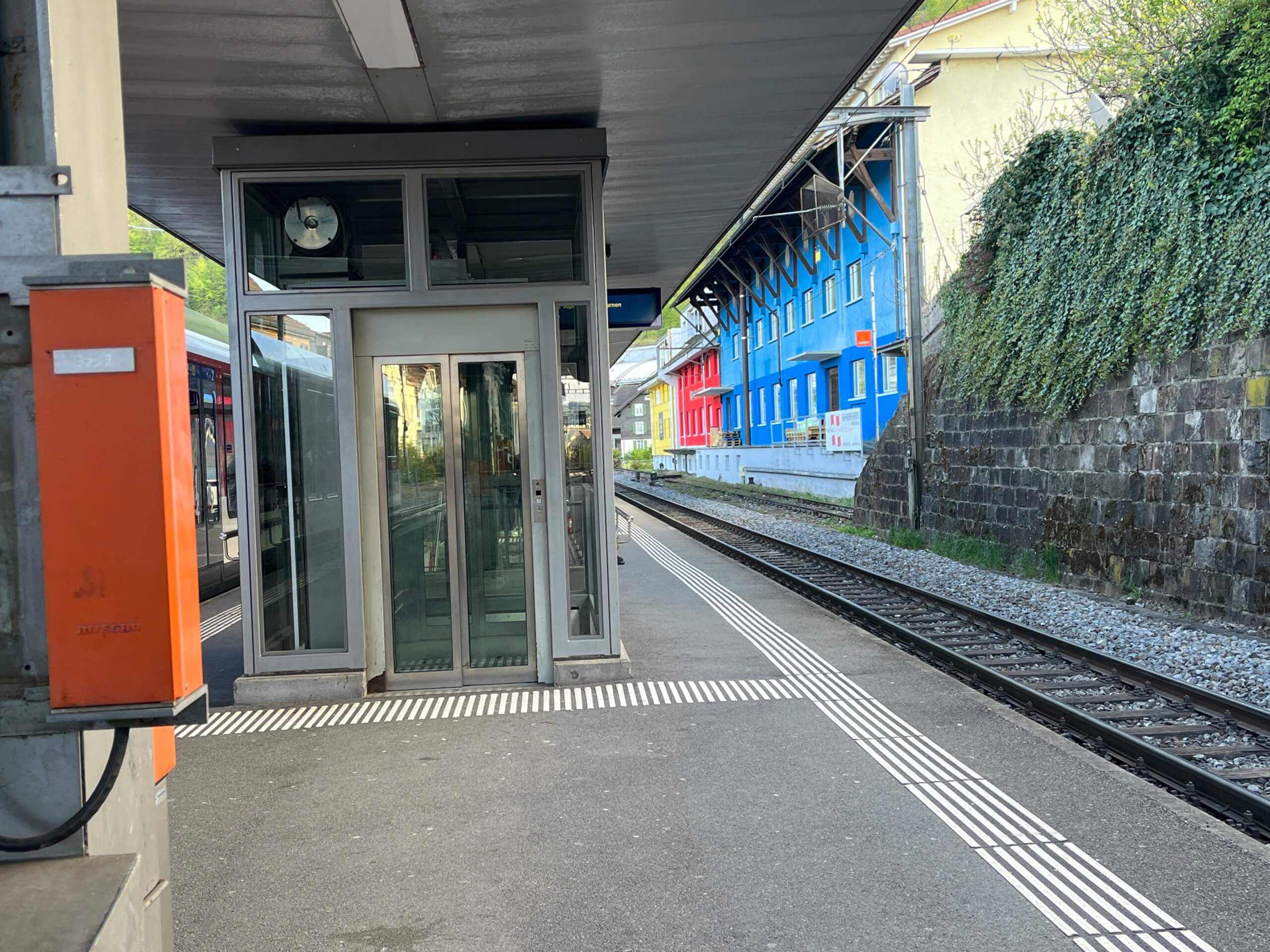 Für das Foto bedanken wir uns bei https://www.standseilbahnen.ch. Dort finden sich weitere Informationen zu diesem Aufzug. Löbliche Seite. Unbedingt besuchen!