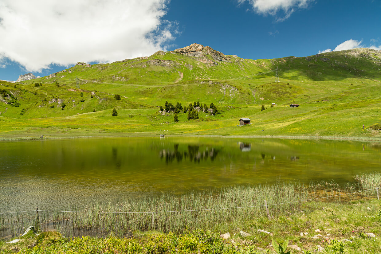 Der See ist zum Glück mit dem Auto nicht erreichbar, man geht entweder zu Fuss, nimmt das Zweirad – oder das Alpentaxi, das jedoch nicht jeden Tag fährt. Vom See aus sind schöne Wanderungen möglich, wir kamen von Wergenstein her.