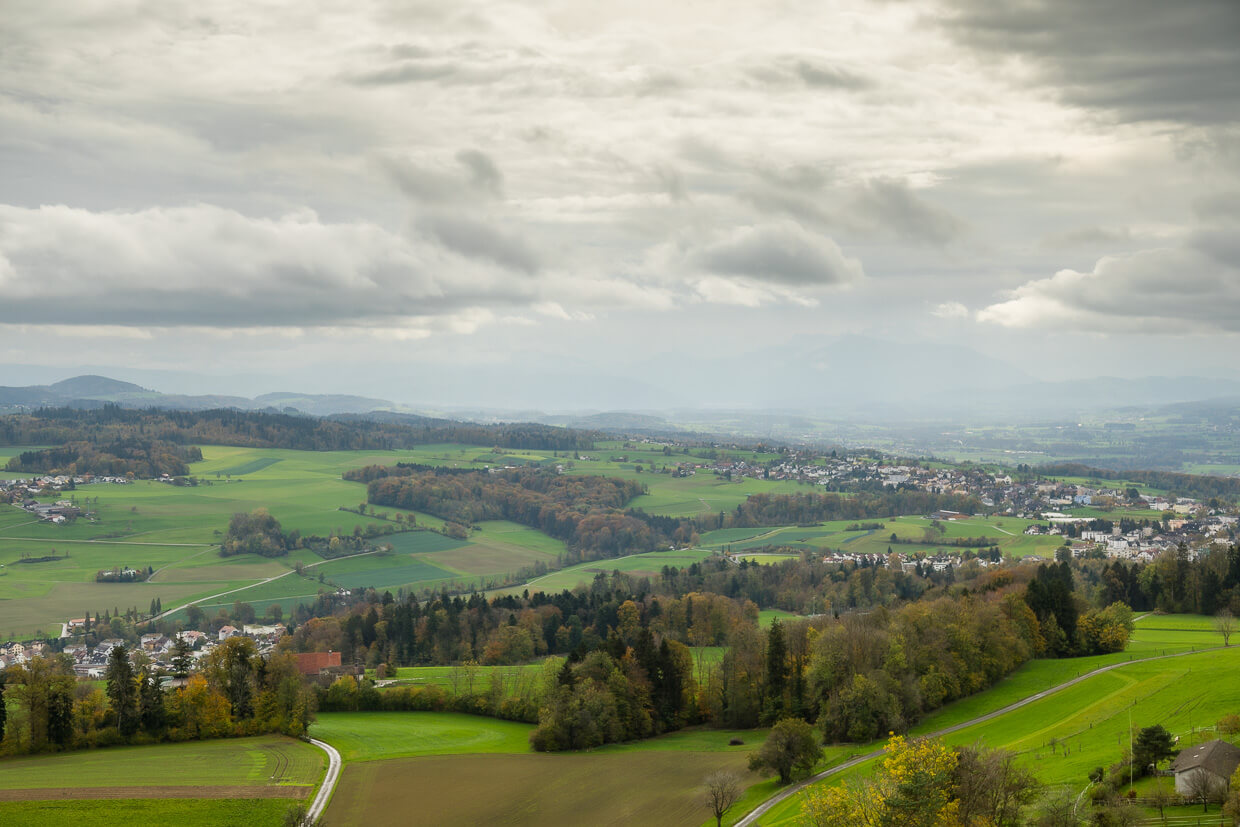 Die in #1898 gezeigte Aussicht bietet sich dem Besucher des Napoleonturm im Weiler Hohenrain, oberhalb des thurgauer Dorfs Wäldi.