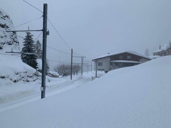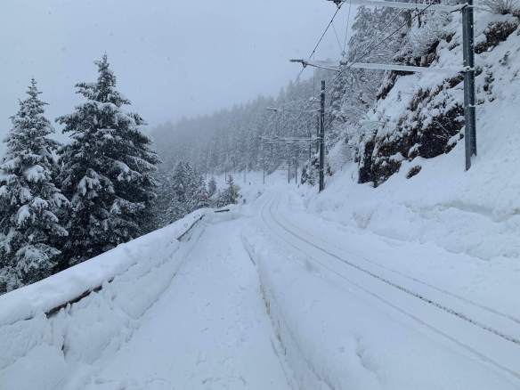 Zwei Stationen später erreichen wir auch schon die (bekannte) Endstation. Übrigens: Würde das Wetter mitspielen, hätten wir eine grossartige Aussicht praktisch auf der ganzen Strecke. Welchen Bahnhof sehen wir auf dem oberen Bild?