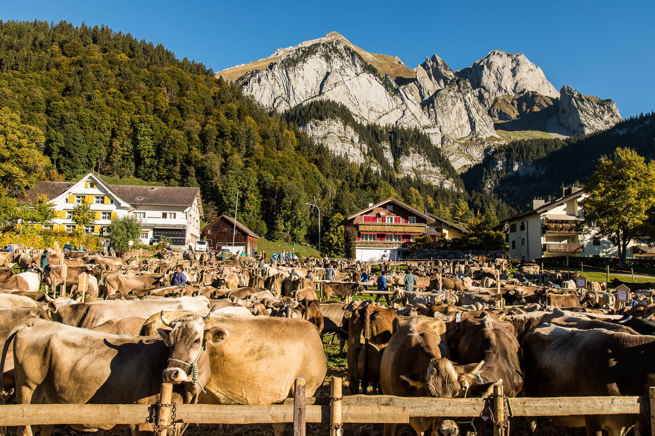 Wildhaus liegt im oberen Toggenburg im Kanton St. Gallen, wo die Thur entspringt (wir erinnern uns an Räzel #1079 – In den Thurauen, wo wir am anderen Ende der Thur waren). Es ist quasi eingeklemmt zwischen dem Alpstein im Norden und den Churfirsten im Süden. Hier wird Brauchtum noch gelebt, Gesang hat eine grosse Bedeutung, was sich auch im Klangweg ausdrückt. Von Wildhaus geht es dann hinunter ins St. Galler Rheintal.