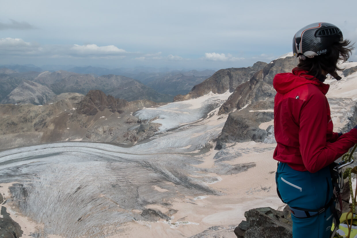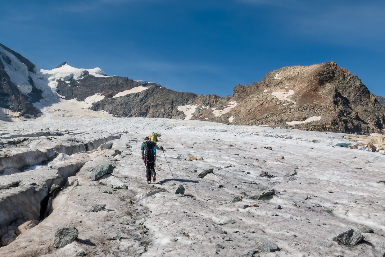 Der Fortezza-Grat ist (noch) komplett von Gletscher umgeben. Er ist die einfachste Verbindung von der Bergstation der Diavolezza (Hinweis im Räzel) zur Marco e Rosa-Hütte.