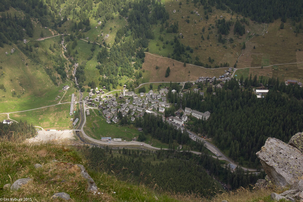 - Bosco/Gurin liegt fast senkrecht unterhalb des Gipfels