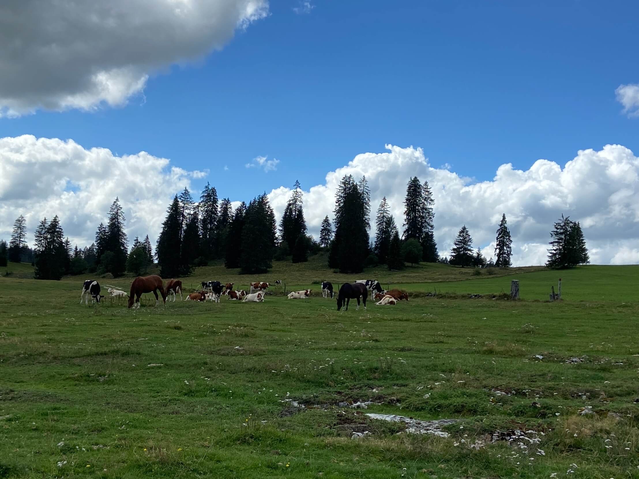 Die Meterspur-Bahn tuckert durch die wunderbare Landschaft der Franche Montagne und verbindet die Metropolen La Chaux-de-Fonds und Saignelégier. Die interessante Geschichte dieser Bahngesellschaft findet sich hier (auf Deutsch!).