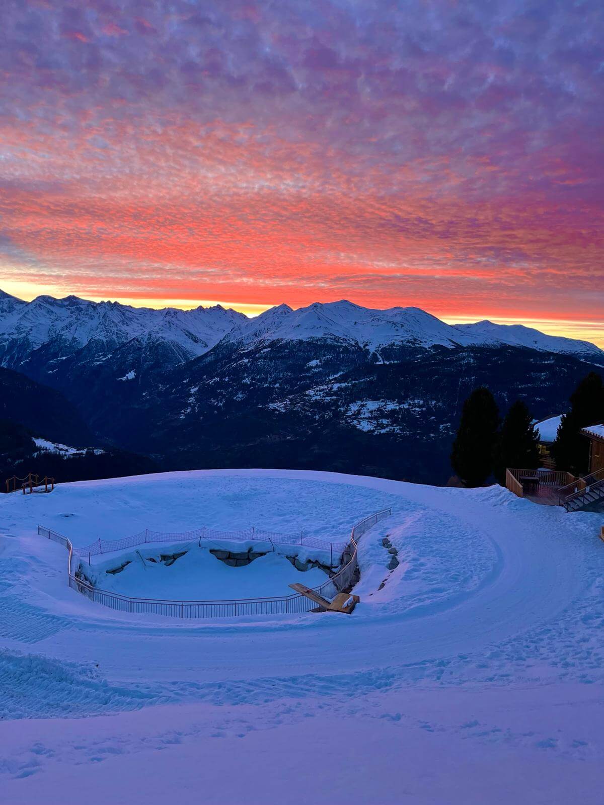 In Rätsel #1708 genossen wir den Sonnenuntergang auf der Terrasse des Bergrestaurants Giw oberhalb von Visperterminen: