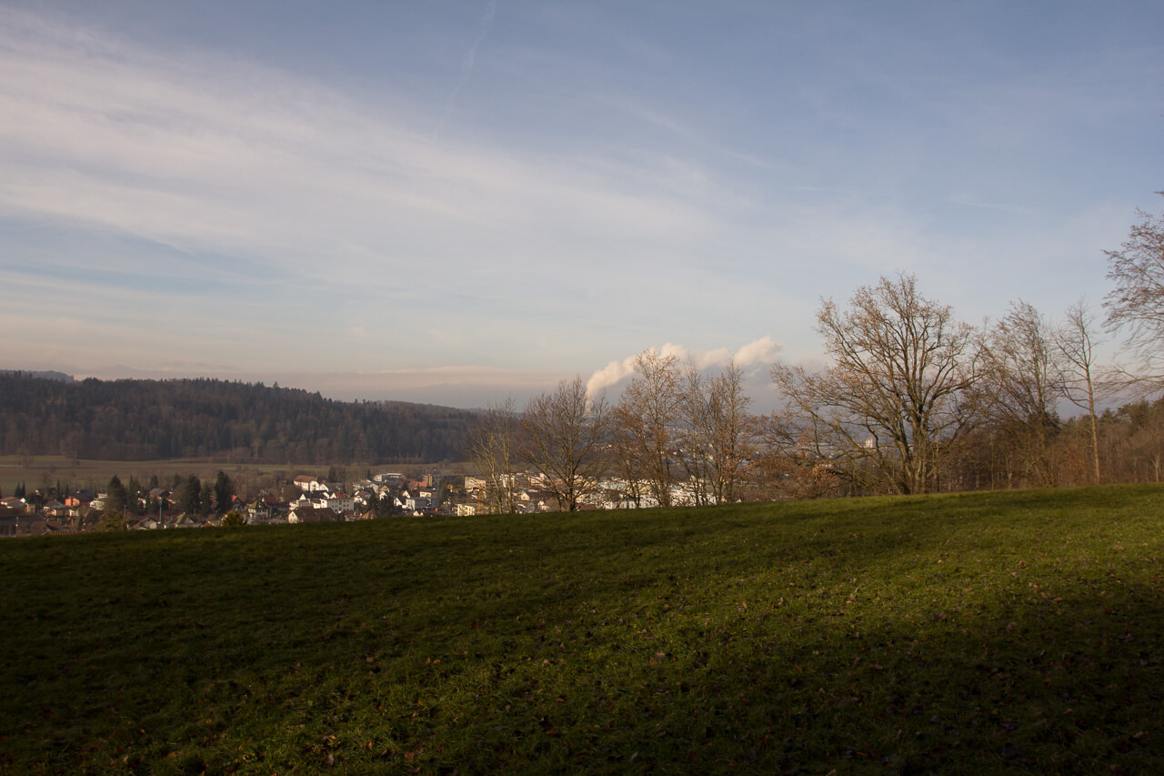Die Dampffahne stammt vom AKW Gösgen, das nicht weit von hier ist. Wer gerne Zug fährt und wandert, der/dem sei die kurze Wanderung von Schöftland nach Unterkulm empfohlen. Dabei reist man von Aarau mit der WSB nach Schöftland und von Unterkulm zurück nach Aarau. Dabei kommt man auch an dem Platz vorbei, wo das Bild entstand, er nennt sich „Blick zur Heimat“. Interessant ist auch die Felsenklause, wo einst Sandstein abgebaut wurde und nun Reliefbilder prangen.